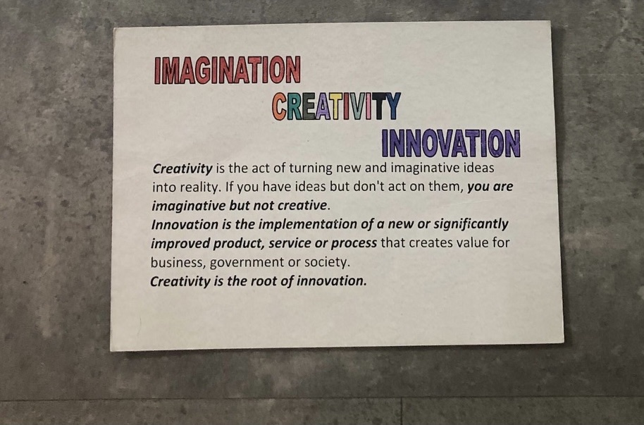 Eftersom gårdagen blev lång med väldigt lite sömn, tog vi alla på våra instruktörers inrådan en liten sovmorgon och missade därför den första delen av dagens kurs. Det vi hann vara med på var däremot intressant. Bland annat fick vi fundera över definitionerna på fantasi, kreativitet och innovation och hur de relaterar till varandra. Malena, en av våra energiska instruktörer, menade att kreativitet är en förmåga som kan tränas upp så därför kan ingen säga att man saknar kreativitet. En infallsvinkel som jag känner att jag behöver ta till mig både privat och i min yrkesroll, jag tänker ofta att jag inte är så kreativ och därför inte kan komma på nya saker att göra. Det är enligt henne fel och jag väljer att tro henne.