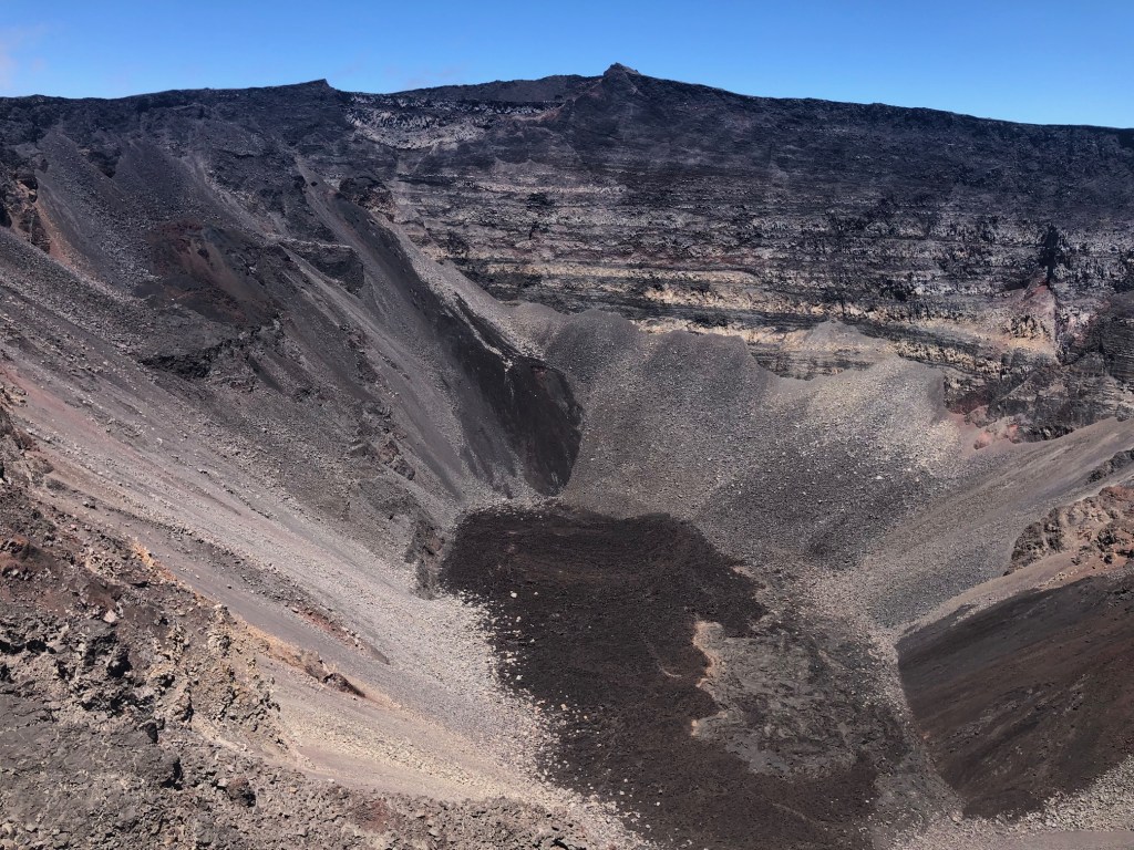 05:00 i går morse ringde klockan och 30 minuter senare åkte vi iväg mot ”Piton de la Fournaise”. Piton de la Fournaise är en av världens mest aktiva vulkaner och den ligger på den östra sidan av La Réunion och den hade sitt senaste utbrott 2010. Efter ca en och en halv timmes färd, varav den sista biten på svindlande serpentinvägar, var vi framme vid vårt mål för dagen. För att ta sig ned till golvet av kalderan tar man en trappa i flera avsatser som klänger sig fast i klippväggen, den är svår att gå i då den är gjord i sten och trappstegen är lite olika långa.