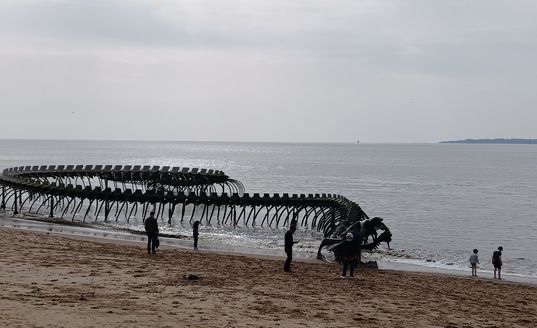 Efter glass och promenad åkte vi vidare norrut på små vägar längs kusten. Och till slut fick vi beskåda sandormen som ligger ömsom under ömsom i vattnet på stranden vid Saint Nazaire, skeppsvarvens franska mecka.