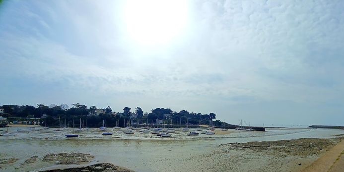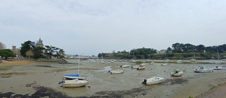 Det var ett rejält lågvatten i Pornic så båtarna låg som strandade i gyttjan. Trots vädret (rätt grått och molnigt) var det fullt av folk på strandpromenaden. Det blåste lätt från havet och det luktade gott av tång.