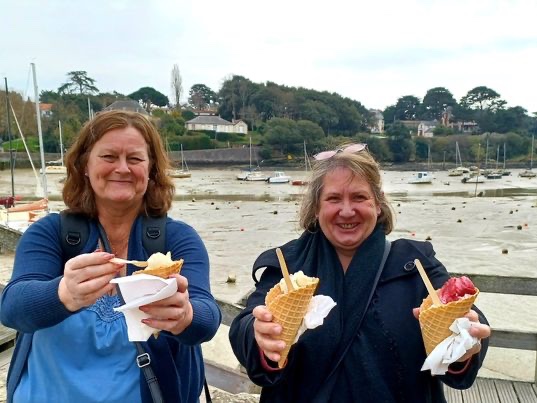 Efter en utsökt lunch med godsaker från havet, avsmakade vi den lokala glassen med jordgubbar från trakten 😋. Vi diskuterade ostron, surströmming, snäckfiske, älg och renskav i en salig blandning.