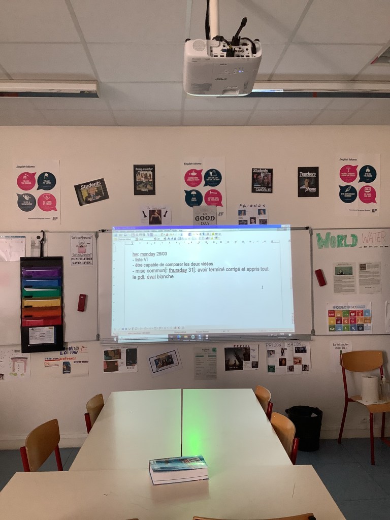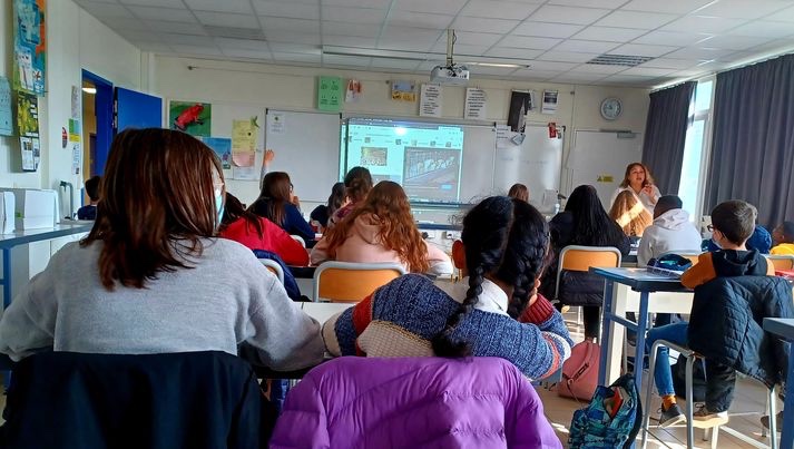Första lektionen var med 6F, elever ur yngsta årskursen. De är 10-11 år. De kom med välfyllda ryggsäckar innehållande 6 skolböcker och lika många stora skrivhäften, välfyllt pennfodral och kontaktboken. När närvarokorten var klar ställde de frågor om mig och Sverige. Så var det dags att repetera be + ingform. Lärarinnan lägger främst vikt vid att eleverna ska våga tala och leder dem rätt i uttalet. Madame behöver flera gånger uppmana eleverna till tystnad.
