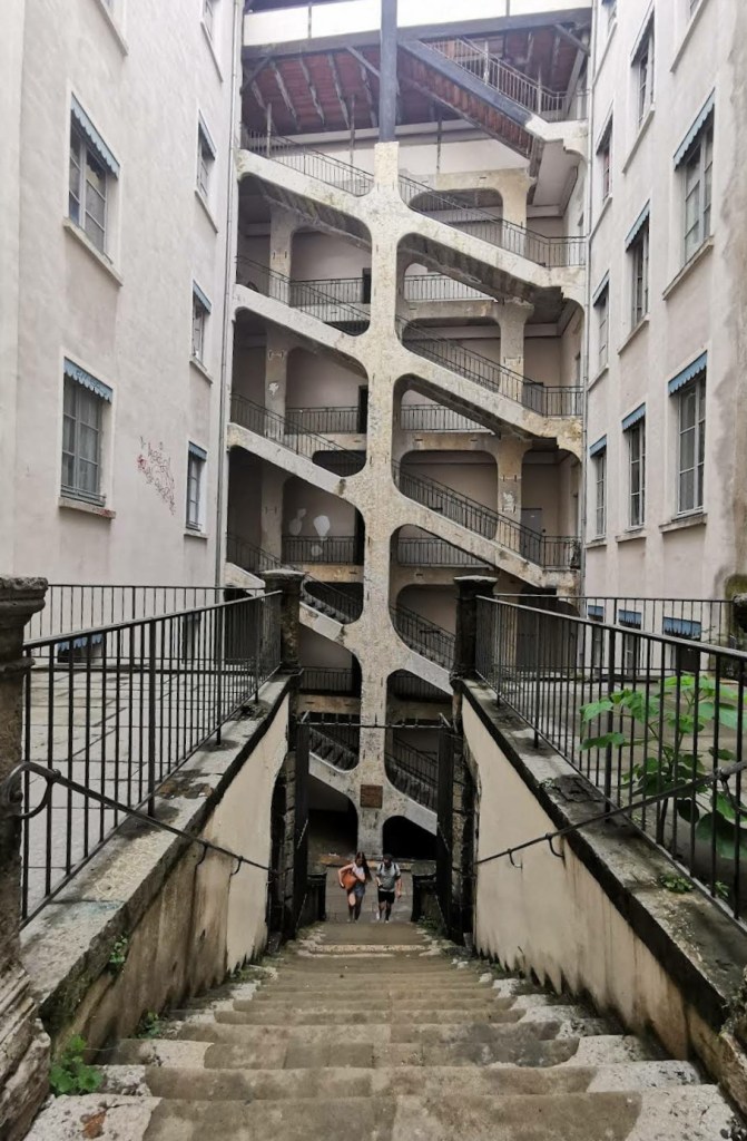 Här fick även chansen att ta oss ner mot staden via Traboule et Cour des Voraces som är mer eller mindre hemliga gångar och passager mellan hus och kvarter. De sägs ha använts av sidenvävare för att kunna ta sig med nyvävt sidentyg från kullens topp ner till de ”finare” delen av staden utan att behöva riskera att få tyget vått av regn – alltså med tak över huvudet hela vägen. Passagerna användes även av motståndsrörelsen under kriget för stt fly obemärkt undan tyskarna.