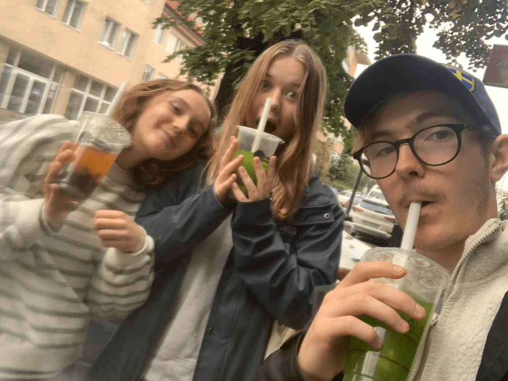 Efter detta tog vi bussen hemåt. Vi hoppade av bussen nära centrum och gick till en närliggande bubbel tea shop. Detta uppskattades som ni kan se på bilden här nedan.