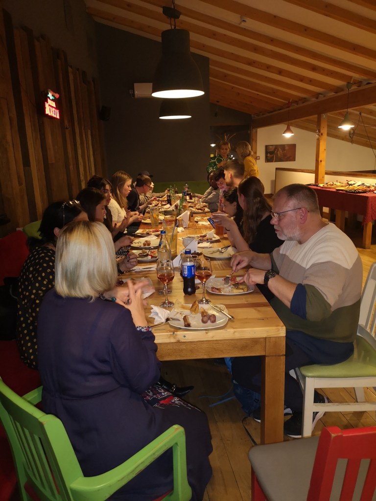 Gårdagskvällen avslutades med en brakfest på L’Artista pub tillsammans med det rumänska teamet. Det dracks rumänskt iste, Pepsi twist, lemonader av olika slag, vatten från Karpaterna, 7-up och Pepsi Max.