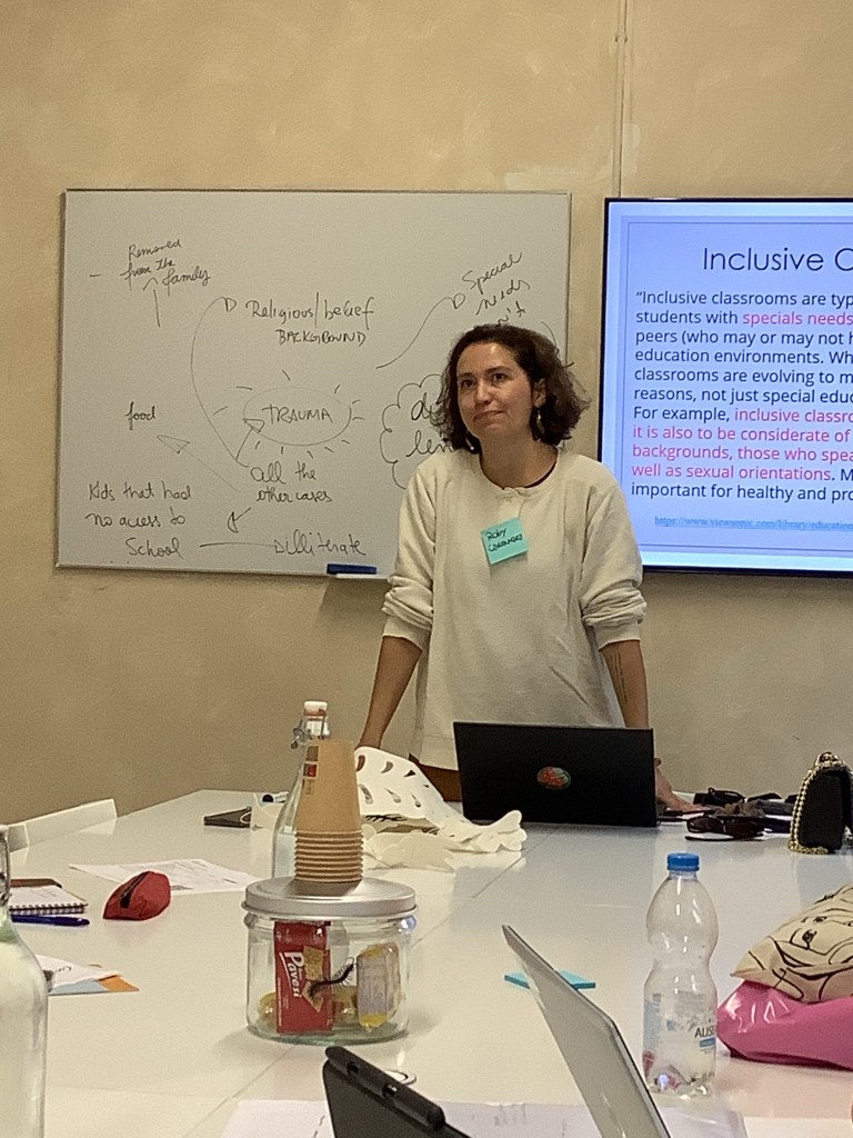 Vi diskuterade hur vi får in uppskattning – stöttning – involvering utifrån ordet ”respekt” i klassrummet. Jag hamnade i grupp med Anette och Isabel från Spanien. Vi kom fram till att vi hade ganska lika i våra klassrum, även om Isabel undervisar yngre barn.