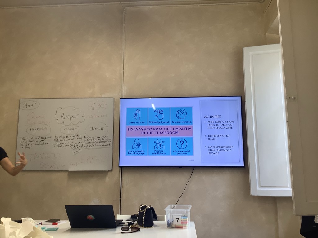 Trygga barn lär, sa en klok person en gång som jag har haft förmånen att lära känna. Hon är förskollärare och har snart jobbat ett helt arbetsliv med barn. Jag skulle säga att hon uttalade en sanning. När eleven känner sig och befinner sig i en avslappnad miljö kan den lägga sitt ”omkring” åt sidan. Hur skapar man det? Om detta handlade dagens kurstimmar om. Vi fick flera tips och nya ingångsvinklar samt möjlighet att diskutera med de andra ”länderna”. Jag blir lika förundrad varje gång över hur lika våra utmaningar är.