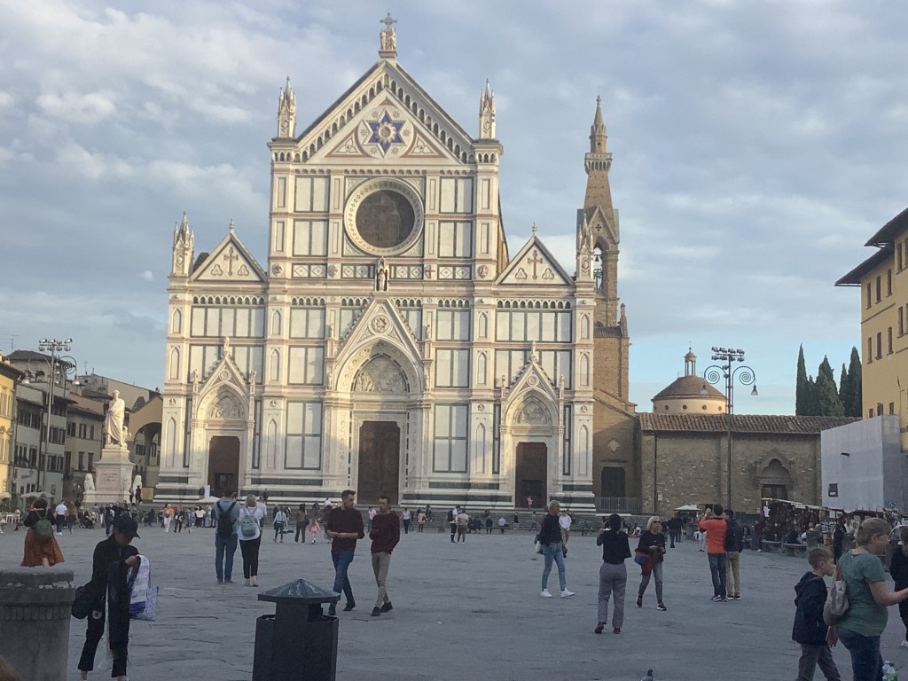 På eftermiddagen ordnade skolan en stadsrundtur. Vi traskade runt i centrala delarna av Florens och fick en hel del matnyttig information. Vi besåg bl a Basilika di Santa Croce som är den kyrka där både Galileo Galilei och Michelangelo ligger begravda. Nu är huvudet fullt av ny kunskap och nya intryck. Anette Funemo