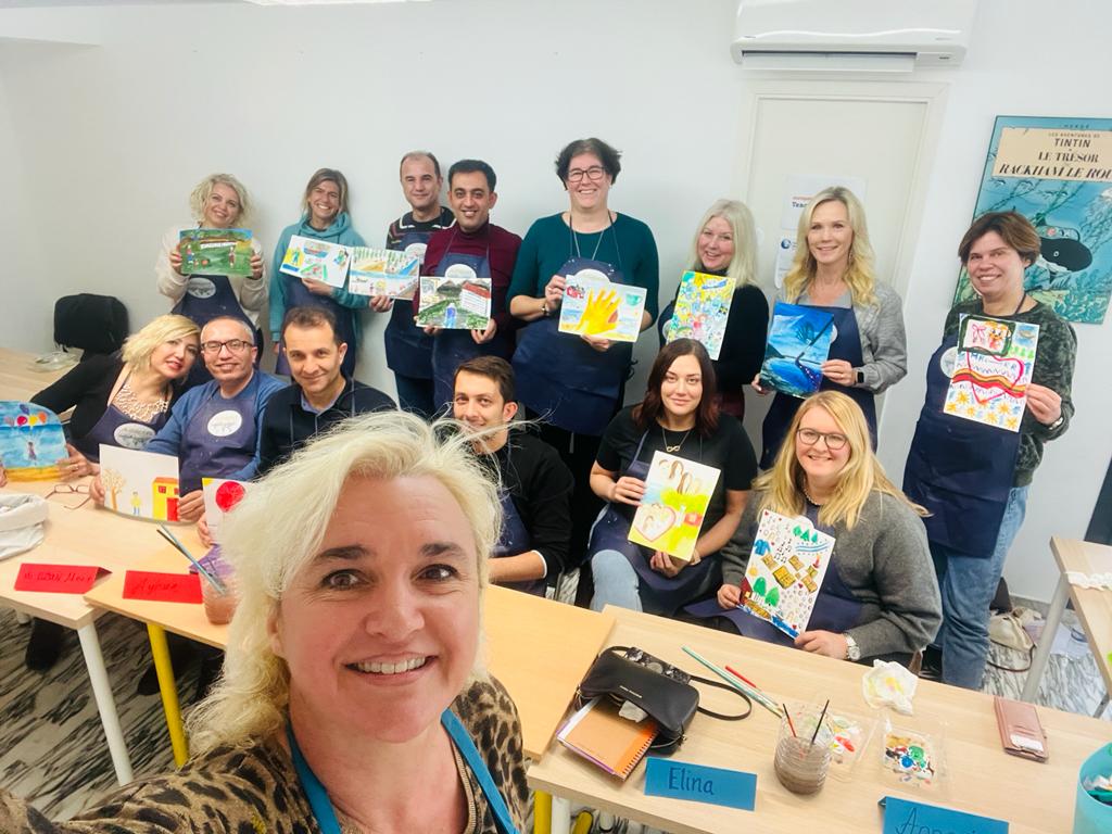 Dagens praktiska uppgift handlade om att ge nyanlända elever en bilduppgift där de, utan att bli bedömda för tekniska kunskaper, målar symboliska delar ur sitt tidigare liv och nuvarande situation. Alla fick sedan berätta om sin bild inför gruppen.