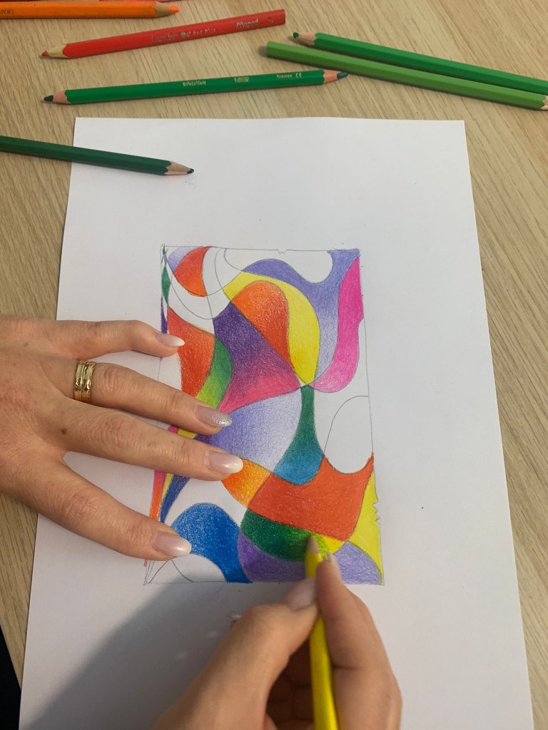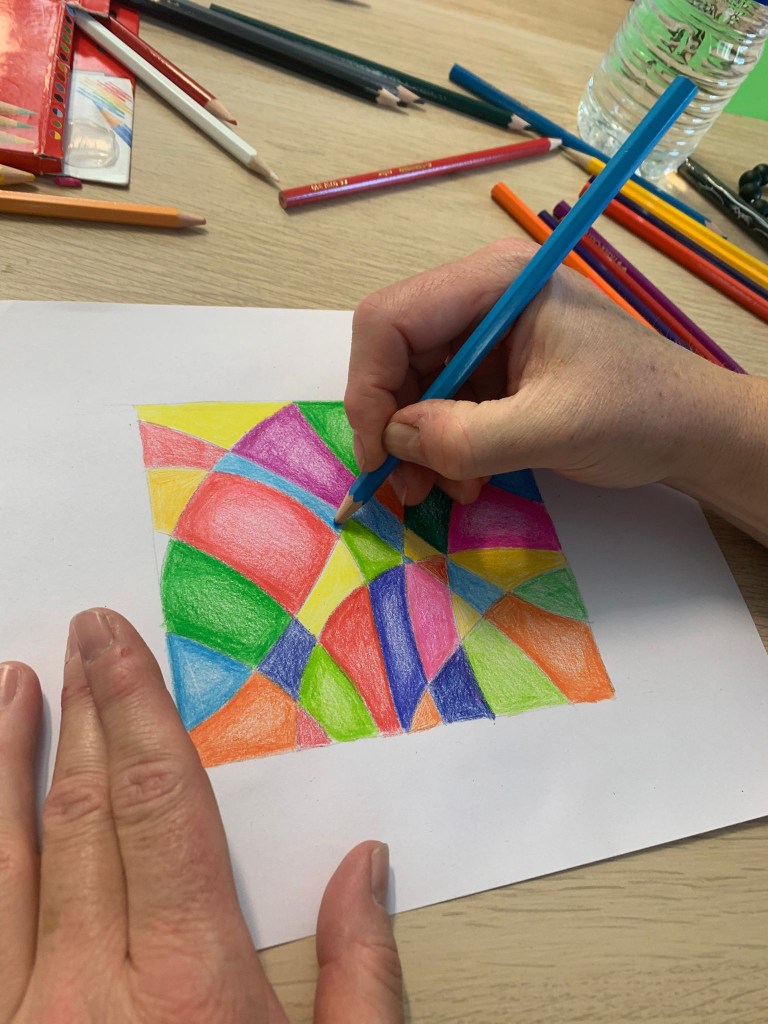Men, för att återgå till dagens övningar med kursgänget så användes förmiddagen till att knyta ihop säcken. Vi provade på ytterligare ett par övningar som tydligen brukar användas i bildterapi och har dokumenterat positiv verkan när man vill inkludera elever som av olika anledningar mår dåligt eller är sårbara. Uppgifterna i sig var enkla och inga nyheter för oss, men det var intressant att få sätta in dem i en ny kontext.
